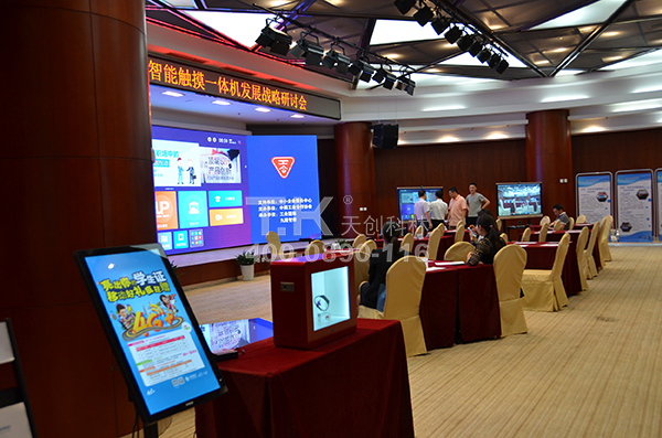 天創(chuàng)科林張總也帶來了智能觸控茶幾、自主業(yè)務(wù)辦理終端產(chǎn)品、透明展示柜等新型的智能觸控產(chǎn)品在研討會(huì)現(xiàn)場上展示,體驗(yàn),得到了現(xiàn)場嘉賓的廣泛關(guān)注。